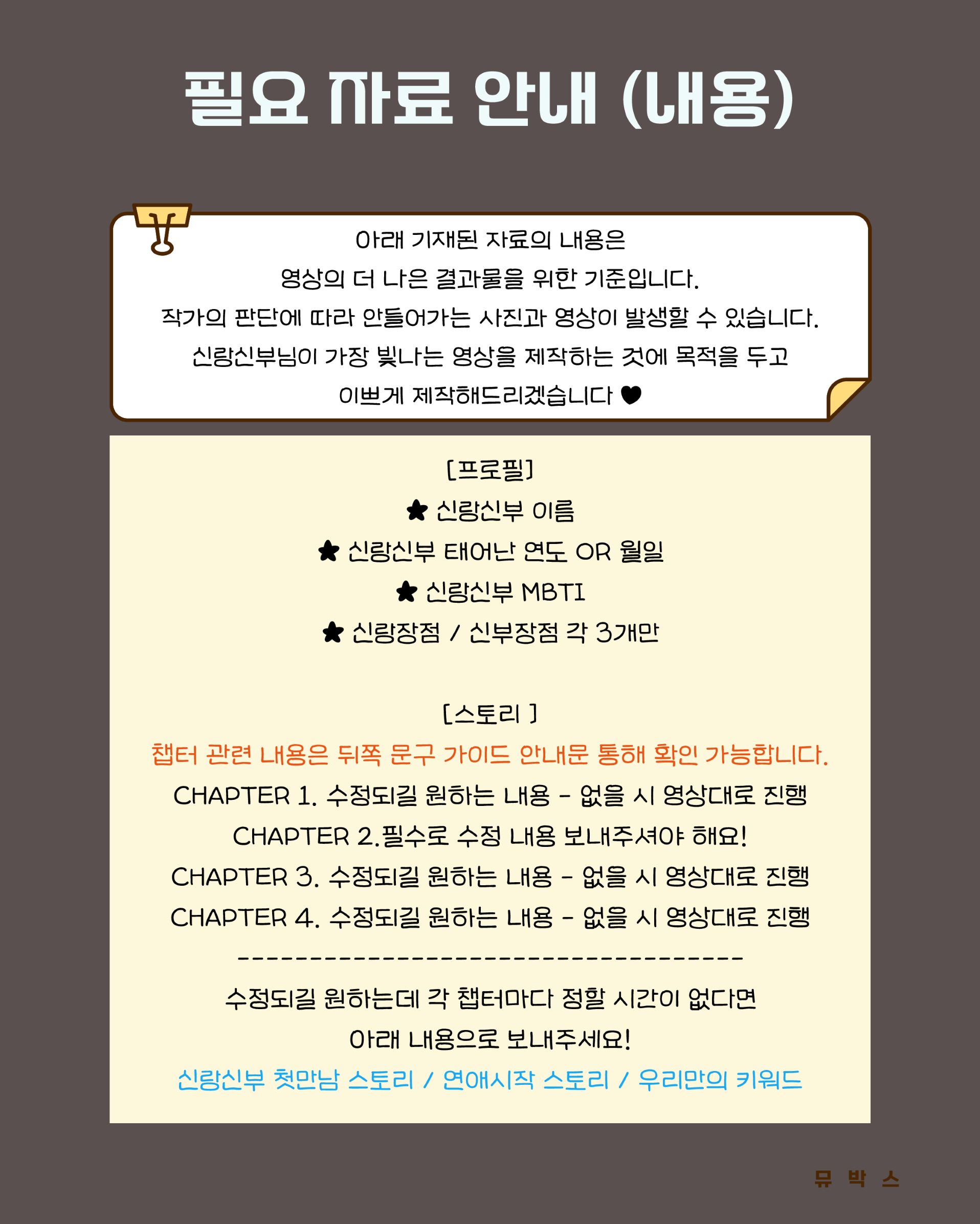 | 결혼식 오프닝 영상 자료 안내 : 한페이지 BY 뮤박스 (0) | 2025.04.29 |